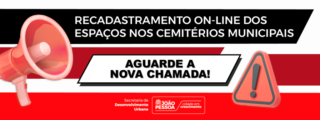A Prefeitura de João Pessoa, por meio da Secretaria de Desenvolvimento Urbano (Sedurb), finalizou a regularização e atualização cadastral das sepulturas, túmulos, jazigos, ossuários e mausoléus existentes nos cinco cemitérios municipais. AGUARDE NOVA CHAMADA!