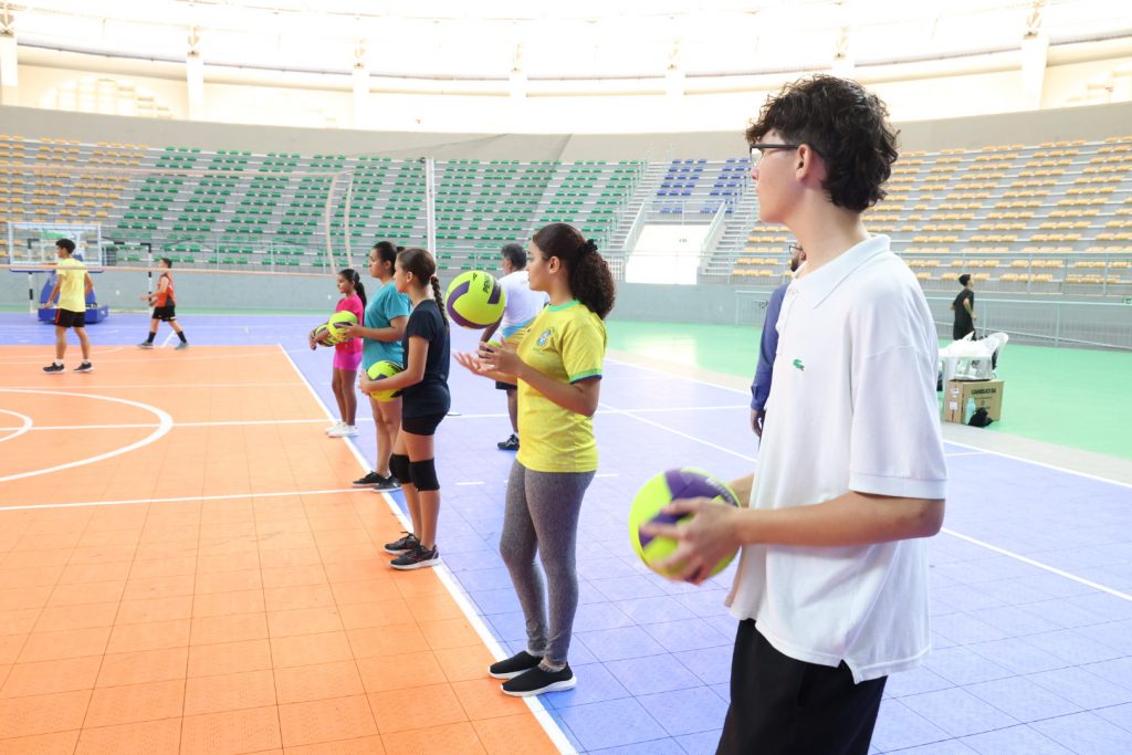 adolescentes crianças entrega de materiais esporte Fundação Campeões do Amanhã incentivo projeto voleibol