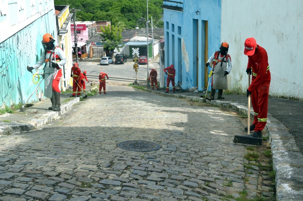 Os agentes da Autarquia Especial Municipal de Limpeza Urbana (Emlur) realizam uma grande ação de conservação do Centro e de mais seis bairros de João Pessoa, nesta segunda-feira (16). Os serviços de roçagem, capinação e pintura de meio-fio são realizados nos bairros de Jacarapé, Portal do Sol, Mussumagro, Cidade Verde, Miramar e Padre Zé.