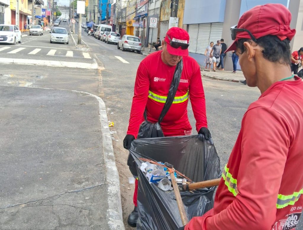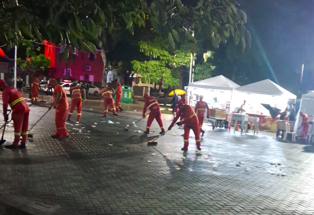 Agentes da Emlur finalizam serviços de limpeza no Centro após festejos do São João Multicultural