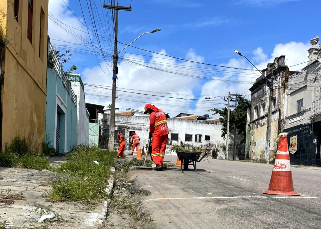 Mais de 100 agentes da Autarquia Especial Municipal de Limpeza Urbana (Emlur) realizaram uma grande ação de zeladoria nas ruas do Centro de João Pessoa, neste domingo (2). Dez turmas de agentes de limpeza executaram as ações de roçagem, capinação e pintura de meio-fio, contemplando também as áreas do Centro Histórico e do Distrito Mecânico.