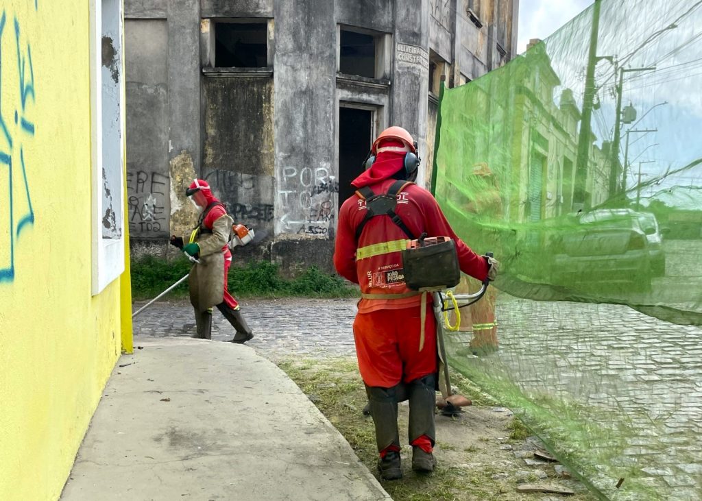 ações diárias capinação Centro de João Pessoa emlur limpeza urbana pintura de meio-fio roçagem zeladoria
