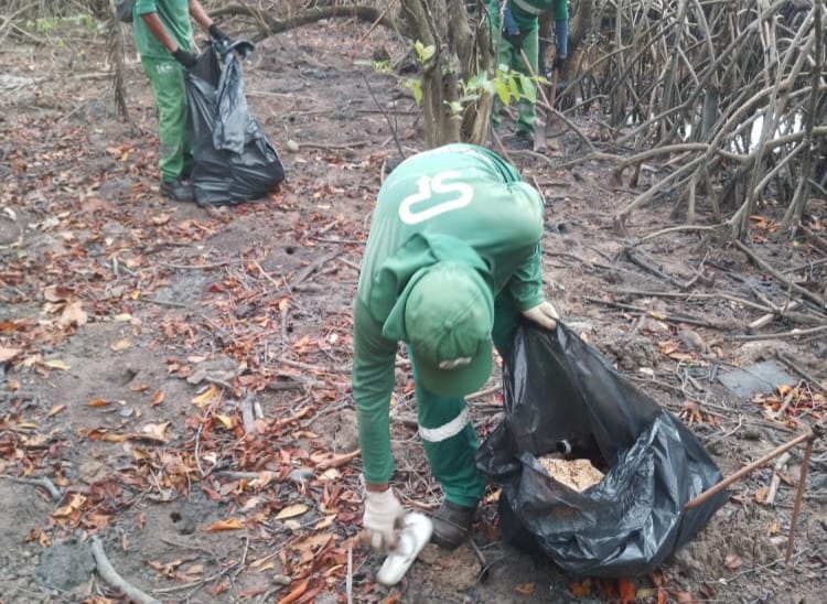 No último sábado (12), a Emlur realizou uma ação de limpeza em Jacarapé, em áreas de preservação ambiental, com a coleta de resíduos. O acesso aos locais foi feito a partir de uma jangada e contou com a ajuda de moradores locais.
