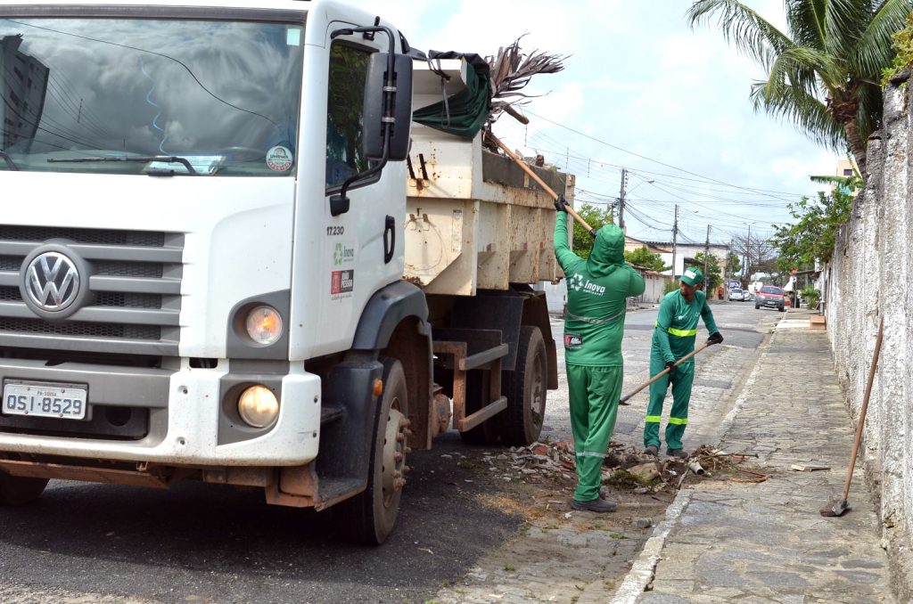 Os agentes da Autarquia Especial Municipal de Limpeza Urbana (Emlur) recolhem resíduos diversos em oito bairros, nesta quarta-feira (4). Os locais atendidos são: Valentina Figueiredo, Muçumagro, Paratibe, Bancários, Alto do Mateus, Cidade dos Funcionários, Centro e Bancários, além do Acesso Oeste.