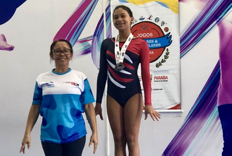 A aluna de ginástica artística Jhennyffer Souza, que integra o projeto ‘Campeões do Amanhã’, da Prefeitura de João Pessoa, conquistou na última semana três medalhas na etapa estadual de 15 a 17 anos dos Jogos Escolares. No evento disputado na sala de ginástica do Unipê, na Capital, ela foi ouro na trave de equilíbrio e obteve duas pratas no salto sobre a mesa e nas paralelas assimétricas.