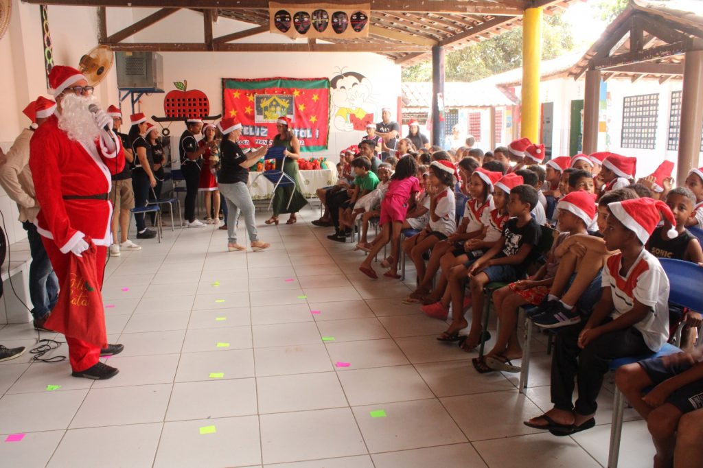 A analista do Instituto Alpargatas, Geilza da Silva Pereira Santos, falou sobre a importância da ação ‘Papai Noel na Escola’. “Nós temos uma imensa alegria de fortalecer essa credibilidade e esse legado que é a importância da educação para as crianças, justamente com essa união do espírito natalino. Os nossos voluntários, que são funcionários do Alpargatas, também amigos, parceiros, familiares dos funcionários, eles têm a maior alegria e prazer em nos procurar para poder adotar as cartinhas das crianças. É mais uma ação de sucesso junto com a Secretaria de Educação”, disse Geiza.