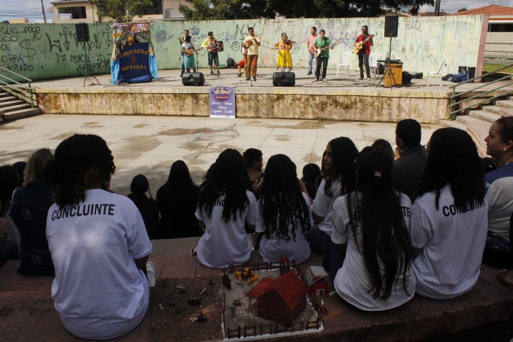 A iniciativa é mais uma ação que se alinha aos objetivos do programa Prefeito Amigo da Criança. No anfiteatro da praça teve apresentação do grupo de professores da Educação Musical da Sedec, além das alunas Otavia Maria de Lima Firmino, Ester Araujo da Silva e Estefany Araújo da Silva, ambas do 9° ano, Escola Moema Tinoco. Elas fizeram uma releitura do cordel ‘Boi misterioso’, do autor Leandro Gomes de Barros.