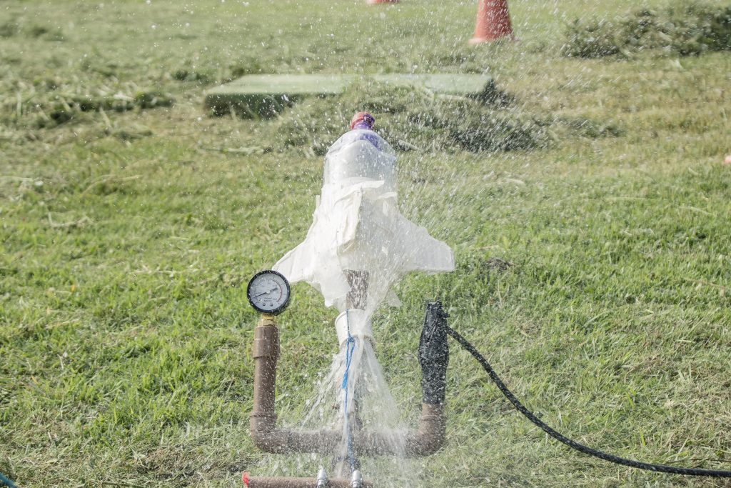 No nível 3, a base de lançamento é mais complexa porque tem um manômetro acoplado que verifica a pressão que é colocada no sistema. O foguete decola quando está por volta de 50 a 75 libras.