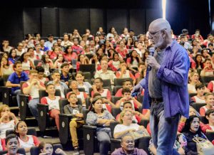 Cerca de 400 alunos de oito escolas da rede municipal de ensino de João Pessoa participaram na manhã desta sexta-feira (14) de uma palestra com o professor da PUC e pedagogo Ricardo Galhardo Blanco. A palestra, que teve como foco o bullying, contou com a presença de alunos das escolas José Américo, João XXIII, Santos Dummond, João Santa Cruz, Augusto dos Anjos, Analice Caldas, Oscar de Castro e Zulmira de Novaes. A palestra ocorreu no Auditório do Centro Cultural Ariano Suassuna.