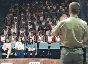 prevenção à violência e às drogas. Todo o conteúdo foi ministrado por policiais militares que aplicaram 12 aulas em um trimestre, com duração de uma hora semanal para as turmas do 5º e 7º anos.