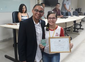 Prêmio destaque – momentos antes do encerramento, os premiados foram pegos de surpresa com o ‘Prêmio destaque’. E a vencedora foi a aluna Mariana Melo Araújo. “Eu não esperava isso. Eu achei que tinha sido bem para ganhar a medalha de ouro, mas não para tanto. Foi uma grande surpresa. Estou emocionada”, agradeceu a aluna.