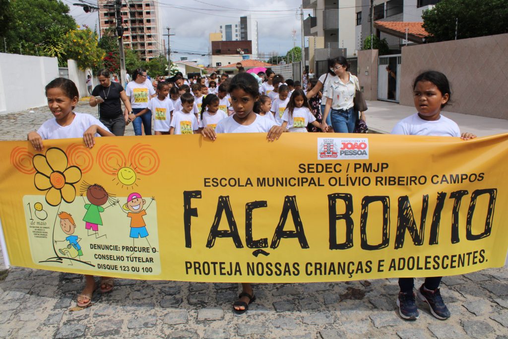 No Dia Nacional de Combate ao Abuso e a Exploração Sexual contra Crianças e Adolescentes, que é lembrado nesta quinta-feira (18), as escolas da Rede Municipal de Ensino de João Pessoa desenvolveram várias ações. Cerca de 200 alunos da Escola Municipal Olívio Ribeiro Campos, no bairro dos Bancários, realizaram uma caminhada pelas ruas no entorno da escola, com cartazes nas mãos, para chamar a atenção da população.