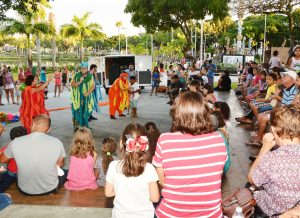 Já no Parque da Lagoa, a diversão e alegria ficou por conta do grupo Soluar, que trouxe o espetáculo “Das voltas que o mundo dá, uma história vou contar”. O enredo conta a história de um Camaleão, que certo dia, na floresta, acordou feliz. Mudou sua cor para cor-de-rosa, que ele achava a mais bonita de todas, e foi passear. Durante o passeio, Camaleão foi encontrando seus amigos e cada um sugeria uma cor diferente para ele usar. Camaleão concordava e mudava sua cor, mas acabou ficando muito cansado. Ele percebeu que, na verdade, é impossível agradar a todos durante todo o tempo.