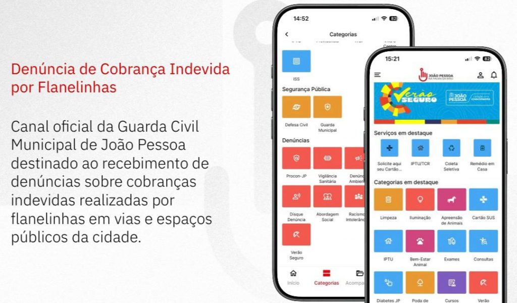 O aplicativo ‘João Pessoa na Palma da Mão’ passa a contar, nesta sexta-feira (9), com duas novas funcionalidades voltadas ao fortalecimento da segurança dos moradores e das pessoas que estão aproveitando as férias curtindo as belezas da cidade. As funções do app estão inseridas na ferramenta ‘Verão Seguro’, que liga o cidadão diretamente à Guarda Civil Metropolitana e ao Procon-JP, garantindo aos consumidores locais e turistas mais proteção, agilidade no atendimento e comunicação direta com os órgãos municipais.