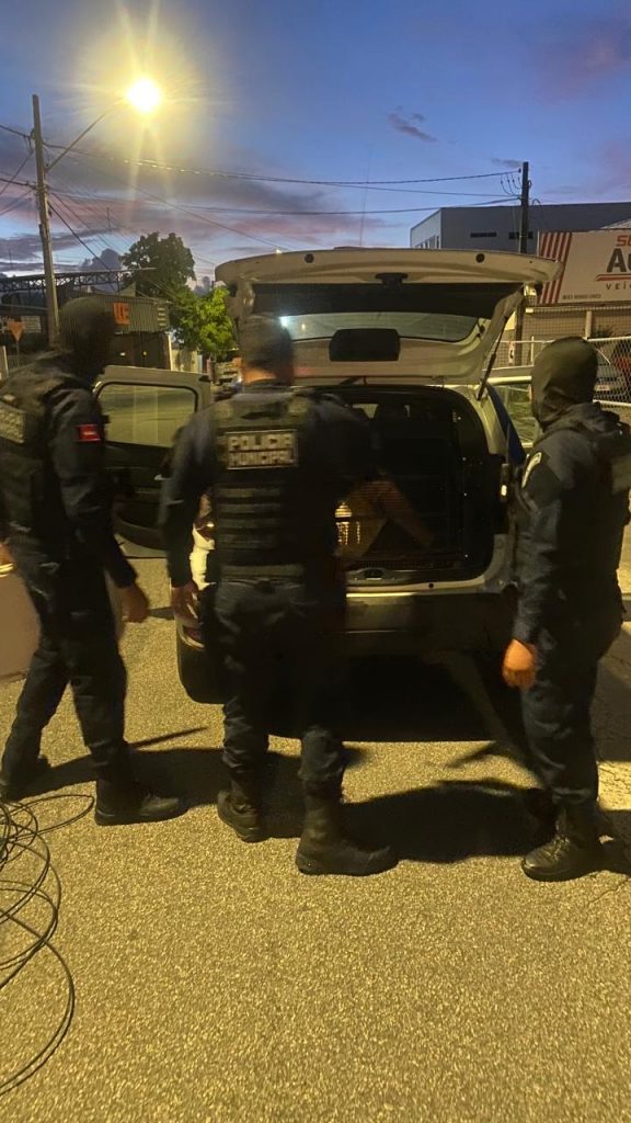 A movimentação criminosa foi flagrada pelas câmeras de segurança e identificada na Central de Videomonitoramento da Guarda, quando o suspeito pulou o muro da unidade e iniciou o arrombamento das portas de acesso ao prédio. Imediatamente, as equipes de Policiamento Preventivo foram acionadas e se deslocaram ao local.