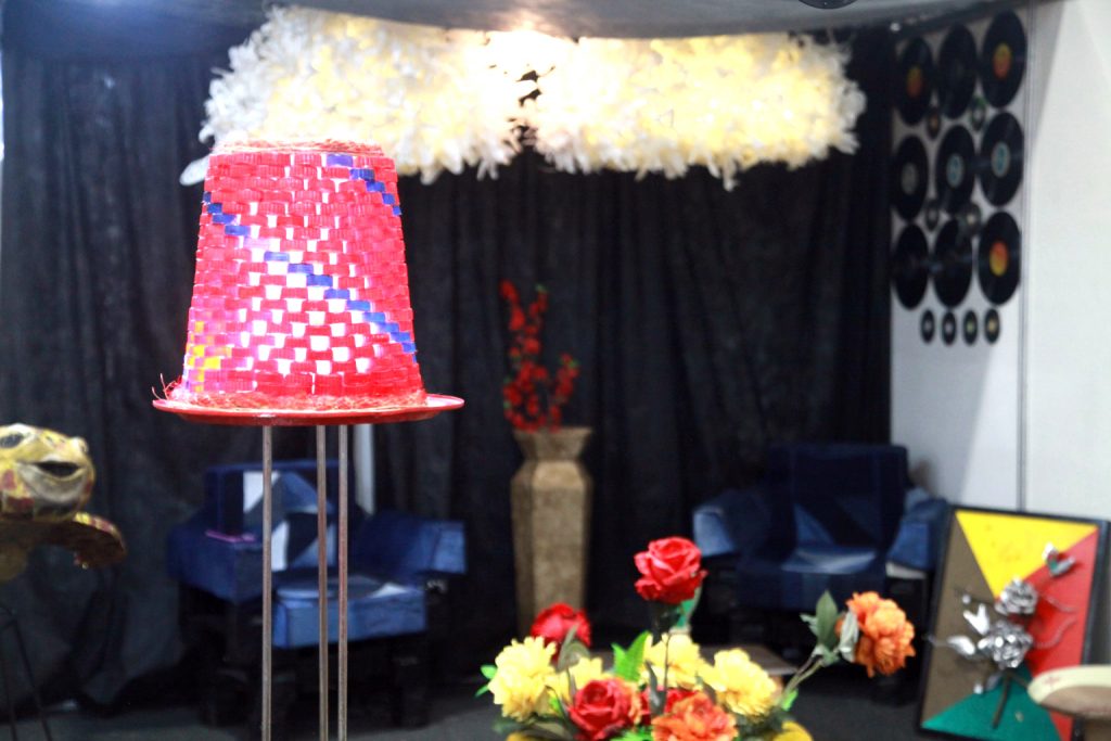 “Também levaremos peças que fazem sucesso, como a nuvem feita de garrafa PET, a tartaruga gigante, elaborada com papel machê, papelão e revista, o barco de papelão e os peixes feitos de isopor, plástico e tecido”, comentou Risonete Guedes. A exposição ainda conta com a sala de estar com pneus, vasos produzidos com papel, barbante, cordão de algodão e rolha de vinho, além de rosas criadas com pano de chão.
