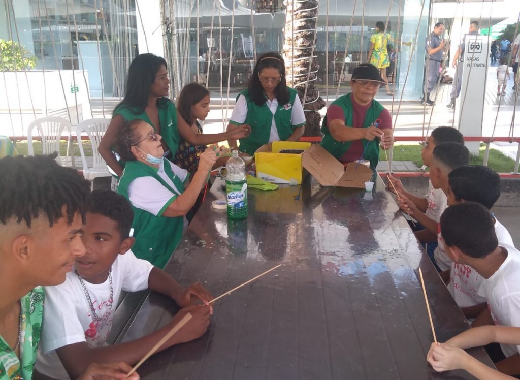 Artesãs da Emlur e Baticumlata ministram oficina de brinquedos com materiais recicláveis