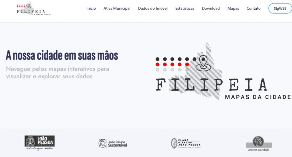 No Atlas Filipeia, o cidadão pode ter acesso aos principais dados cartográficos da cidade, como mapas, mapa de quadra (overlay), download de documentos, acompanhar a evolução da cidade através de mapas, além de estatísticas.