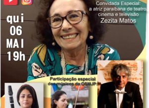 “Essa união das artes é uma coisa que já acontece entre os artistas, e Zezita é uma pessoa que representa João Pessoa e a Paraíba de uma forma excepcional. É praticamente uma primeira-dama da Paraíba. As atuações dela em filmes, não só paraibanos, mas em todo o Brasil, são todas muito importantes. É uma pessoa realmente muito querida no meio das artes e eu estou muito feliz em poder fazer essa live com ela”, elogiou o maestro.
