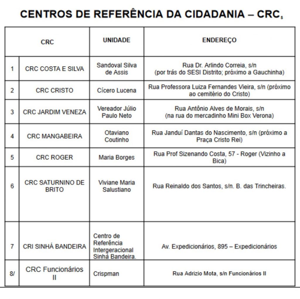 até 30 de julho atualização beneficiários cadastro Centros de referência da cidadania CRCs lista pão e leite recadastramento sedes