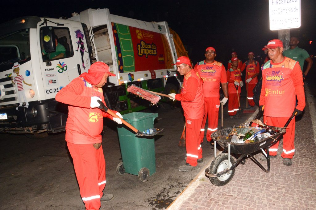 O serviço iniciou às 22h e seguiu pelas horas seguintes. As ações de limpeza foram realizadas ao som do Baticumlata, grupo de percussão da Emlur, que se apresentou no bloco, em cima de um trio elétrico.