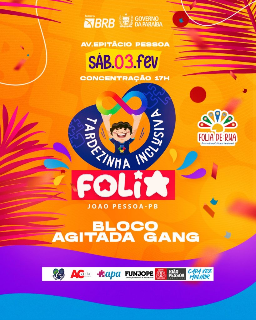 “Esta será uma primeira experiência de inclusão social de nossas crianças e pessoas autistas que faremos no Carnaval de João Pessoa. É uma ação que foi construída a partir de muita conversa com um grupo de mães de crianças autistas que participam da nossa Tardezinha Inclusiva junto com o Bloco Agitada Gang”, afirma o diretor executivo da Funjope, Marcus Alves.