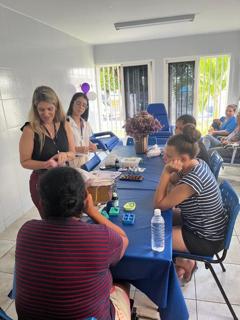As mães acolhidas na Casa Mãe Bebê participaram, na tarde desta quinta-feira (16), de uma oficina de saboaria, visando proporcionar momentos de relaxamento e conexão consigo mesmas através da arteterapia. Além da oficina, o Instituto Cândida Vargas (ICV) realizou uma roda de conversa sobre aleitamento materno.