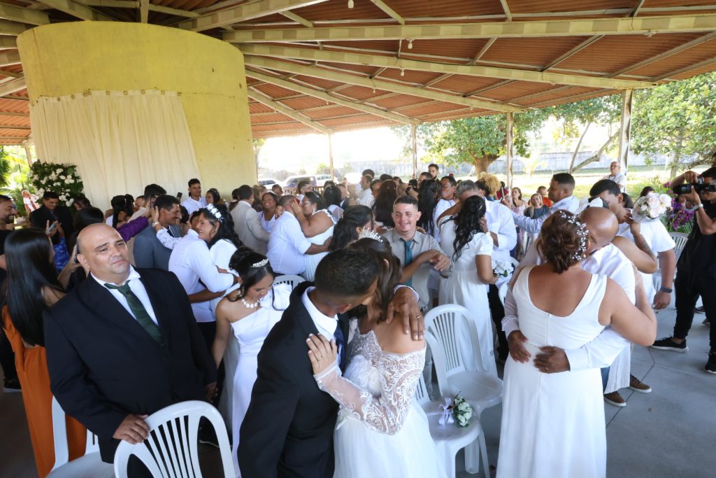 O tão sonhado ‘sim’ foi especial para diversos casais de João Pessoa, na tarde desta sexta-feira (30). A Secretaria de Habitação Social (Semhab), em parceria com o juiz de Paz Eclesiástico Newton Soares e os cartórios do 6º e 7º Ofícios, promoveu uma emocionante cerimônia de casamento coletivo com casais do Residencial Vista Alegre. O evento aconteceu no Centro de Atividades de Lazer Padre Juarez Benício (Cejube), no bairro de Gramame, reunindo cerca de 200 convidados.