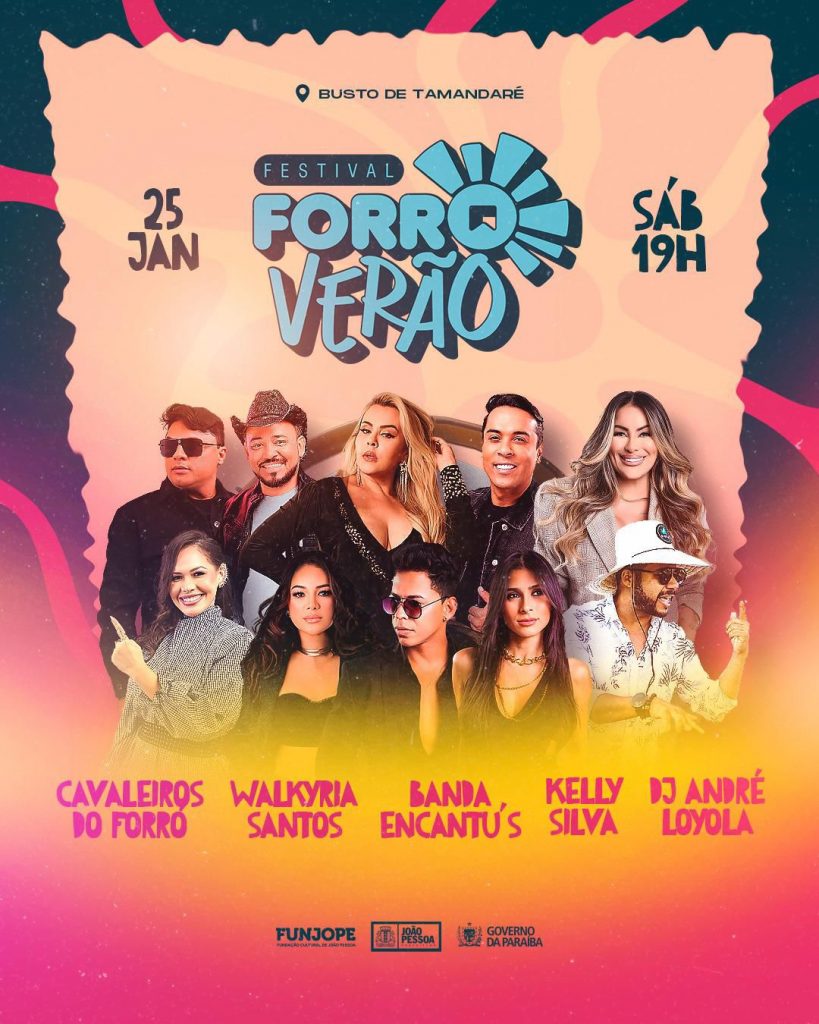A Praia de Tambaú, um dos cenários mais encantadores da cidade de João Pessoa, será palco de muita animação e cultura nordestina, neste sábado (25), em mais uma noite do Festival Forró Verão. Neste fim de semana, se apresentam Cavaleiros do Forró, Walkyria Santos, Banda Encantu’s e Kelly Silva. O evento, promovido pela Prefeitura de João Pessoa, por meio da sua Fundação Cultural (Funjope), é gratuito e já faz parte do calendário festivo da Capital durante a alta estação.