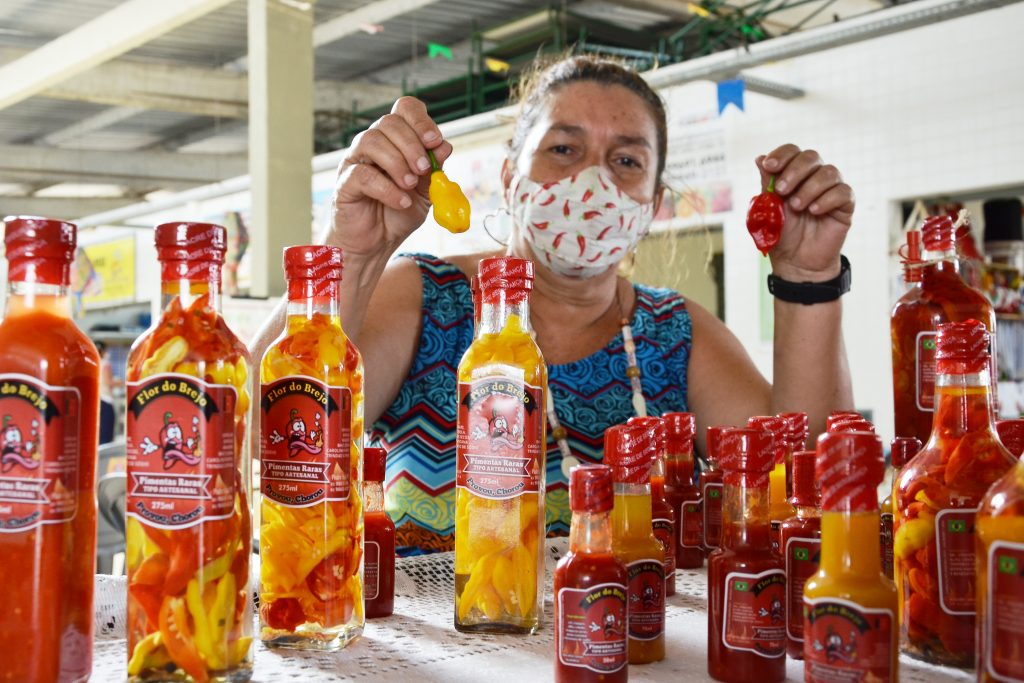 Alimentos especiais – Há cinco anos Eunice Garcia começou a pesquisar sobre pimentas e iniciou o cultivo no seu sítio, na cidade de Pedro Régis, há 93km da capital. “Meu marido me ajuda no cultivo e trabalhamos só com pimentas raras, como a carolina, trindade scorpions, a vanero e temos um público fiel que procura os nossos produtos. Temos os molhos, as pimentas in natura e ainda cultivamos também a laranja japonesa, que é pequena e se come com casca e tudo”, destacou.