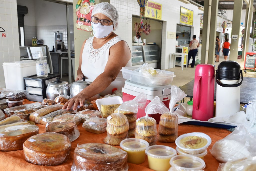 Com bancas de frutas e verduras, lanchonetes, peixaria, artesanato, plantas, queijos, iogurtes e os mais diversos temperos, na Cecaf é possível encontrar também produtos orgânicos, comercializados a preços acessíveis. O local é espaço de fomento não só para os agricultores, mas tem auxiliado microempreendedores individuais, vinculados a cooperativas, a impulsionarem o seu negócio, mesmo em um cenário econômico delicado. Como é o caso de Polena Peixoto, que atua no local desde janeiro de 2020, acabou sendo surpreendida pela pandemia, mas encontrou na Cecaf a chance de potencializar a venda de seus pães. “A gente trabalhava com produtos sem lactose, mas com a retomada das atividades presenciais, começamos com os pães integrais, todos eles produzidos com matérias-primas dos agricultores daqui, além de molhos para acompanhamento, todos sem conservantes”, explicou a comerciante.