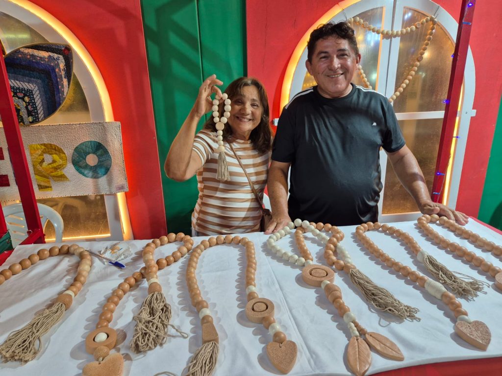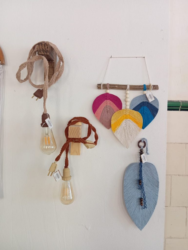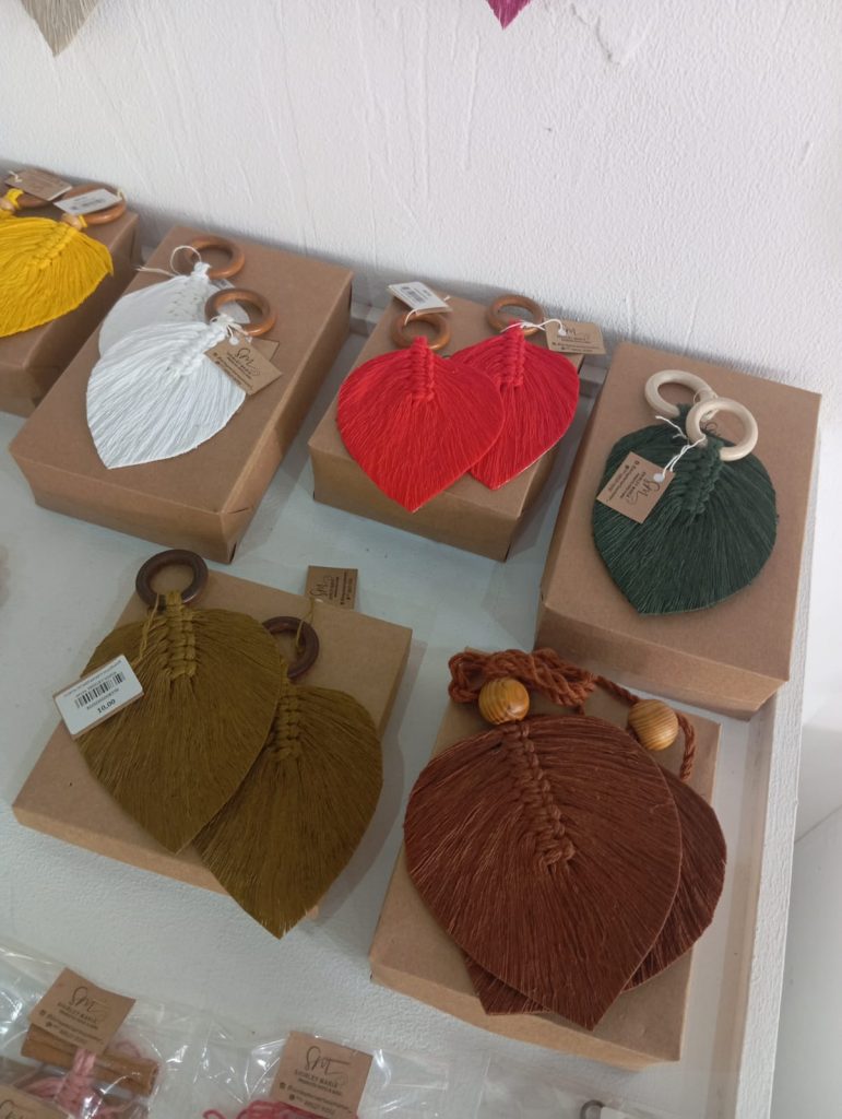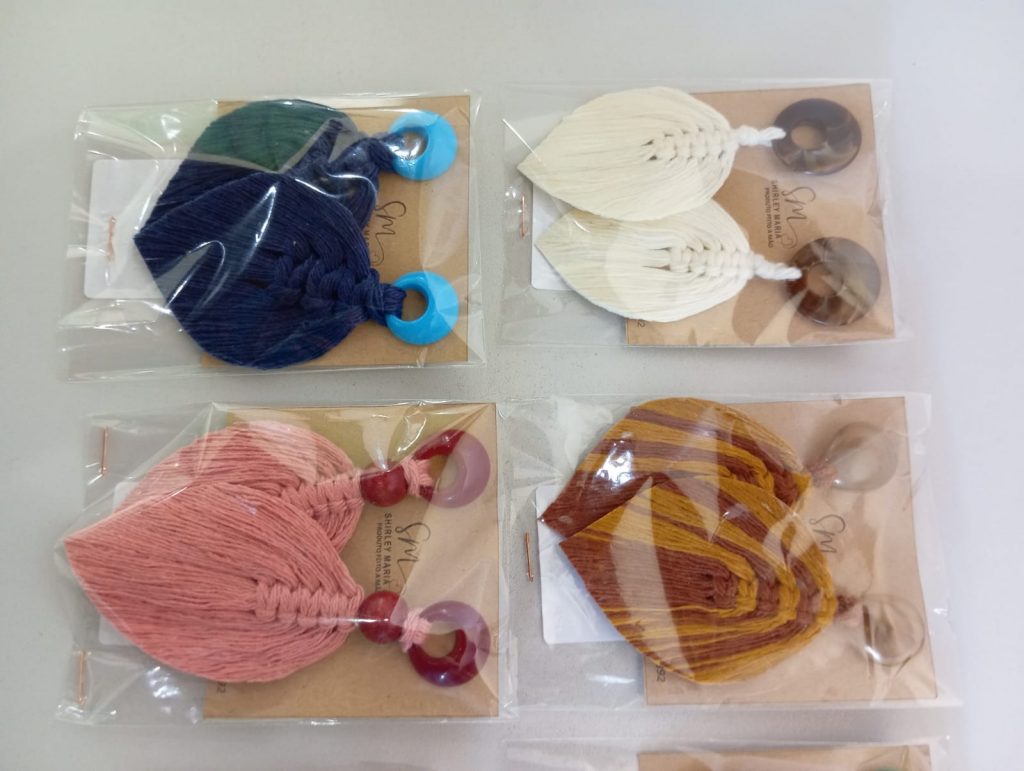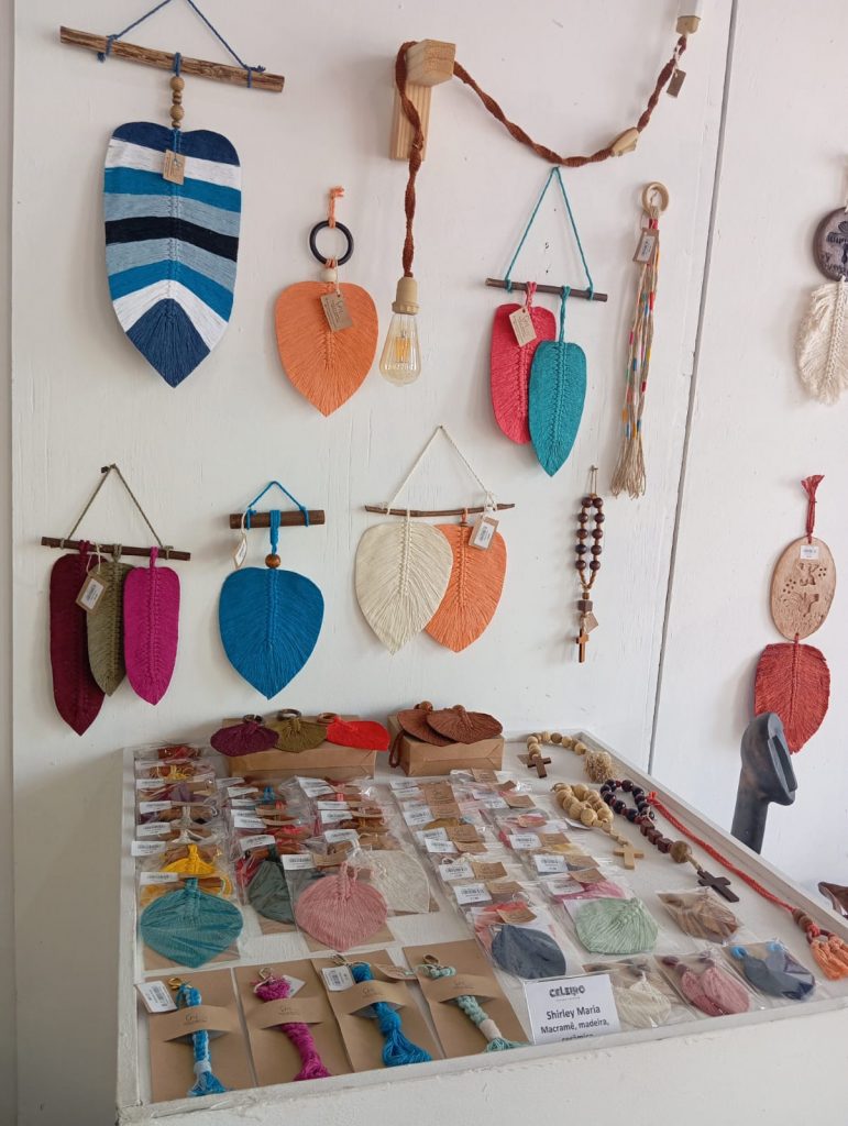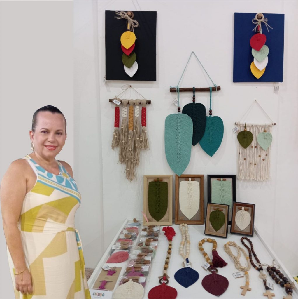 Uma dessas artesãs é Shirley Maria que trabalha com peças na técnica de macramê. São chaveiros, folhas emolduradas, painéis, brincos, entre outros. “Em um mês movimentado costumo ter uma renda maior com a venda de 25 a 30 peças. Uso linhas, barbantes, sisal, madeira, cerâmica no desenvolvimento das peças de macramé. Em 2023 fiz minha primeira peça e desde então sou encantada pelo que faço. Toda semana estou produzindo peças novas, que podem ser parecidas, mas cada uma é única”.
