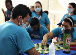 Durante toda a semana, os usuários do Centro Dia se transformaram em verdadeiros atletas paraolímpicos. Como o Ewerton Lucas, de 27 anos, que tem paralisia cerebral. Ele ganhou medalha de ouro no arremesso de argolas e bronze, no dominó. Segundo o competidor, o resultado foi fruto de muito treino com a equipe do serviço. “Eu nunca tinha conquistado uma medalha. Foi uma emoção muito grande. Vou guardá-las com carinho. Inclusive, vou arrumar um cantinho especial para elas”, afirmou.