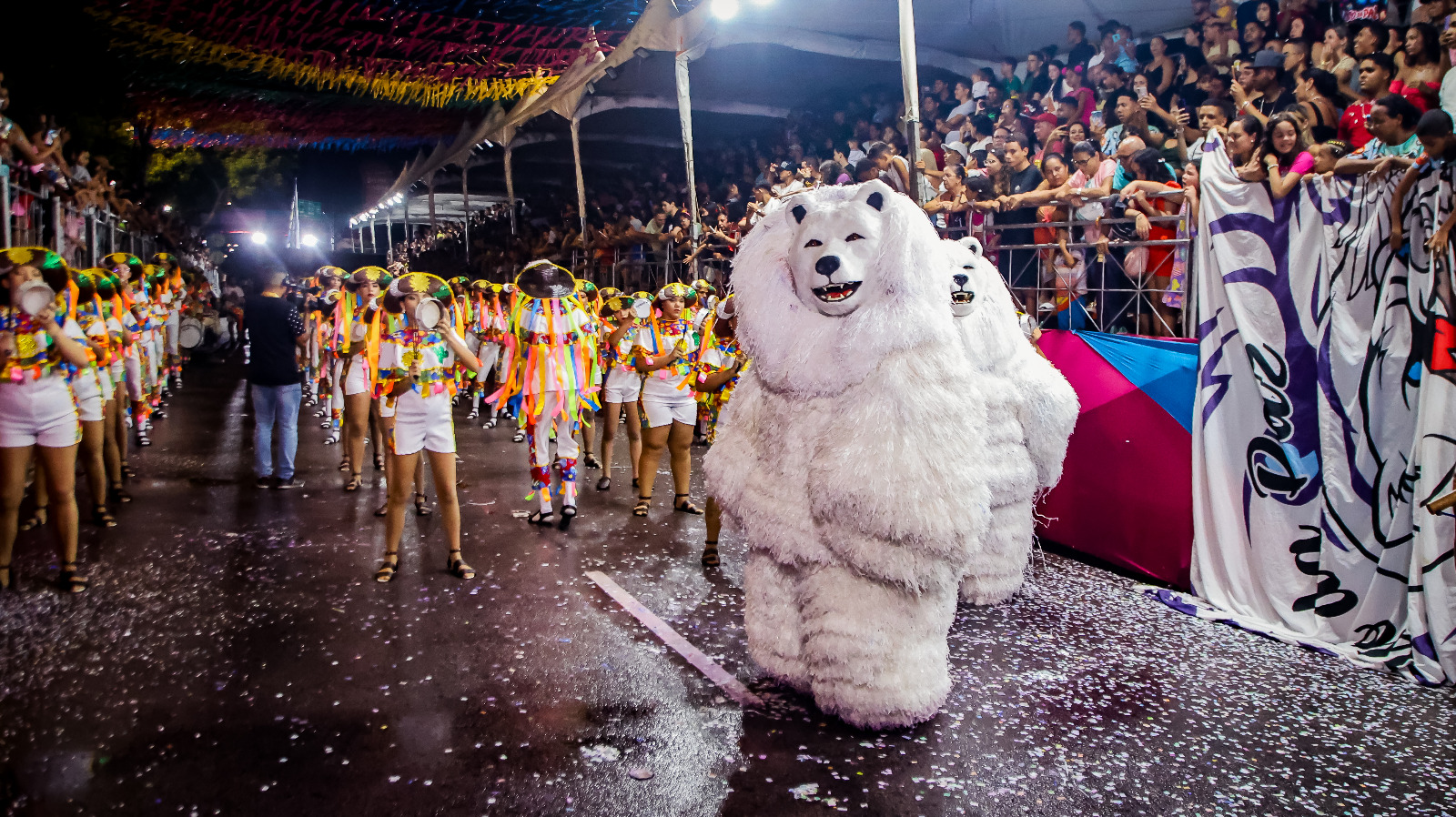 Chuva não atrapalha desfiles e público lota arquibancadas na terceira noite do Carnaval Tradição