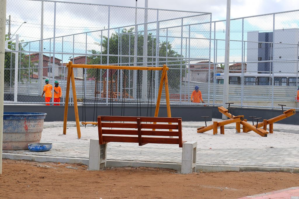 No Colinas, a Feira de 45 boxes está na fase de acabamento e faz parte de um amplo complexo que ainda inclui quadra poliesportiva, quadra de areia, áreas de lazer e convívio social para a população. Já a praça, dentro do padrão que a Prefeitura colocou em 17 bairros, desde 2021, a Secretaria de Infraestrutura aproveitou a área ampla, numa rotatória, para construir equipamentos de lazer e espaço pet.