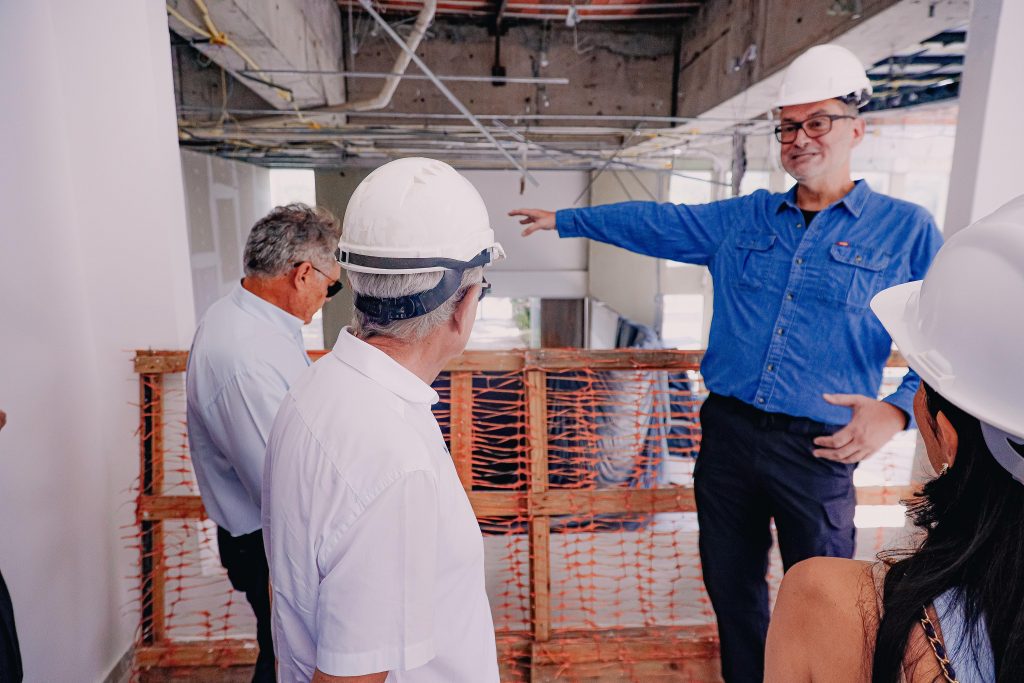 O prefeito Cícero Lucena e o vice-prefeito Leo Bezerra visitaram, na manhã desta terça-feira (7), as obras do Centro de Cooperação da Cidade (CCC), que está sendo construído no bairro do Altiplano, no antigo prédio do Celeiro Cultural. O espaço, que será entregue ainda no primeiro semestre deste ano, vai funcionar como uma espécie de ‘cérebro’ e vai interligar pastas distintas para dar mais eficiência e efetividade às ações da Prefeitura de João Pessoa, com o objetivo de melhorar a vida da população.