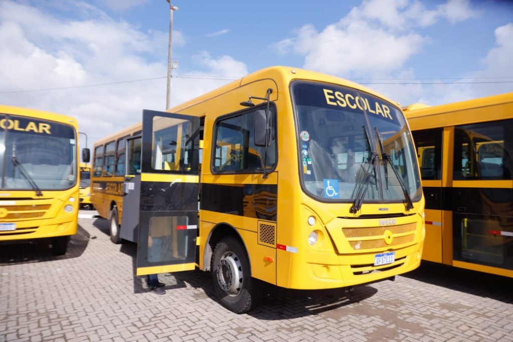 20 novos ônibus escolares acessibilidade ônibus com ar-condicionado prefeito Cícero Lucena renovação da frota escolar sedec transporte escolar