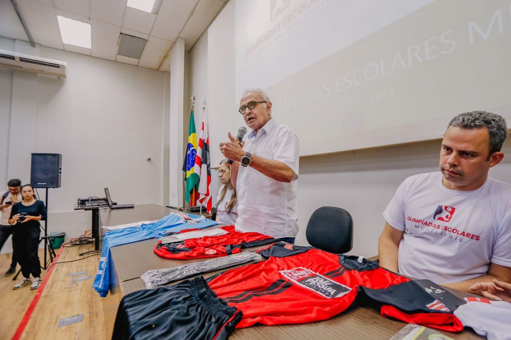 O prefeito Cícero Lucena iniciou, na manhã desta quinta-feira (8), a entrega dos uniformes para os estudantes que vão disputar as Olimpíadas Escolares do Município. O ato ocorreu no auditório do Centro Administrativo Municipal (CAM), em Água Fria, e marca simbolicamente a distribuição de 4.500 padrões completos para a competição.