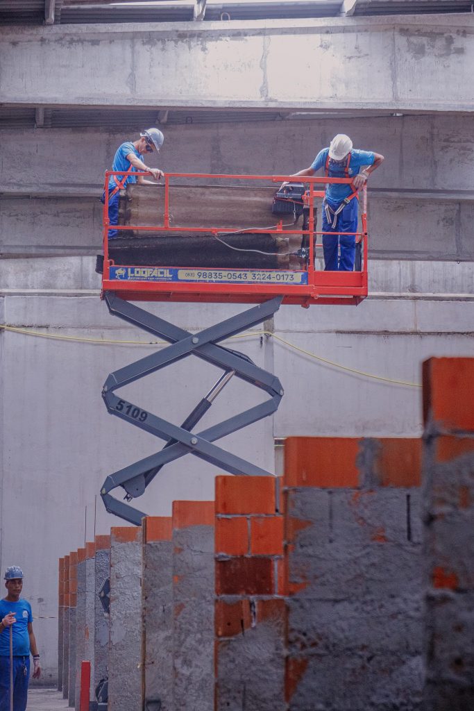 De acordo com a Secretaria de Infraestrutura (Seinfra), a obra está na fase de concretagem das lajes dos boxes, execução da alvenaria de vedação dos boxes e bancas, montagem de formas de vigas, revestimento em argamassa de paredes e tetos, avançando também para a coberta. O investimento será de R$ 10 milhões.