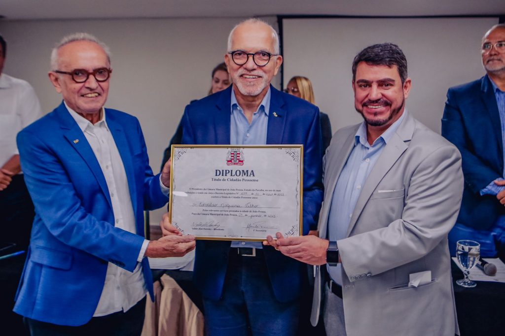 A homenagem foi proposta pelo presidente da Câmara Municipal de João Pessoa, Dinho Dowsley, pelos serviços prestados ao Município pelo gestor. “Edvaldo Nogueira tem feito um grande trabalho na luta pelos interesses de todos os municípios, e, portanto, de toda a população, e é muito justo que ele seja reconhecido como um filho de João Pessoa””, declarou.