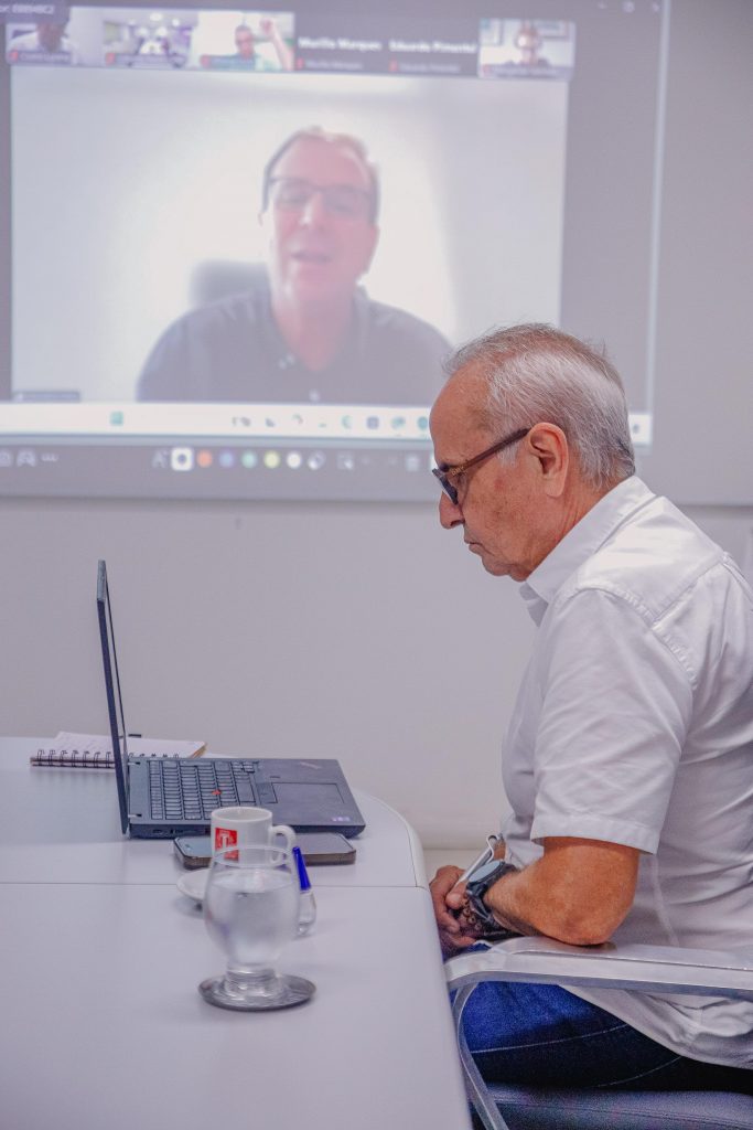 Durante reunião virtual com a Frente Nacional de Prefeitas e Prefeitos (FNP), realizada nesta sexta-feira (16), o prefeito de João Pessoa, Cícero Lucena, participou das discussões sobre a formação de um comitê voltado à continuidade dos debates sobre a reforma tributária. O encontro online ocorreu diretamente do Gabinete do Prefeito, no Centro Administrativo Municipal (CAM), em Água Fria, de onde o gestor também formalizou a transmissão do cargo ao vice-prefeito Leo Bezerra.