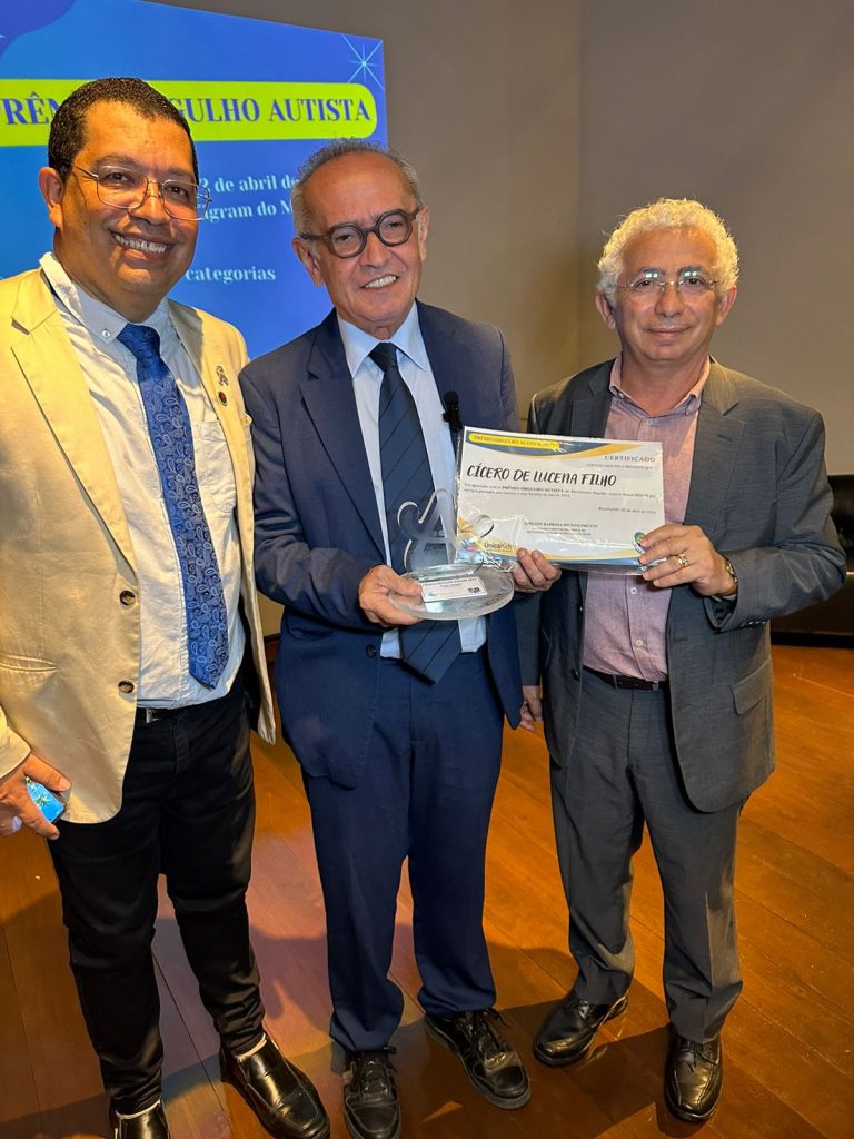 Cícero Lucena recebe prêmio Orgulho Autista Brasil em reconhecimento ao trabalho de inclusão social em João Pessoa