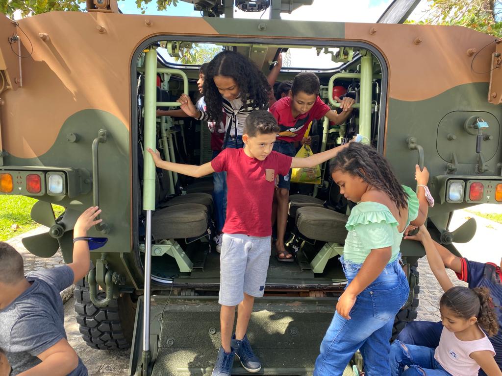 Colônia de Férias da Semhab leva crianças e adolescentes para conhecerem o aeroporto e o 16º Regimento de Cavalaria Mecanizado