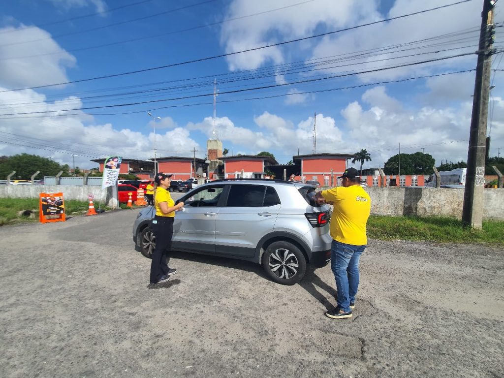 A chegada ao trabalho para os servidores da Superintendência Executiva de Mobilidade Urbana de João Pessoa (Semob-JP), nesta quinta-feira (5), foi recepcionada pela equipe da Divisão de Educação (Died) da autarquia com um comando educativo. Logo na entrada, os carros foram parados e adesivados, bem como os ocupantes receberam material alusivo ao movimento mundial Maio Amarelo, este ano com o tema ‘Juntos Salvamos Vidas’.