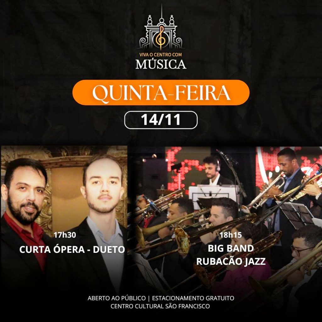 ‘Viva o Centro com Música’ Big Band Rubacão Jazz CCSF Centro Cultural São Francisco concertos Curta Ópera – Dueto jazz Naipe de Saxofones ópera projeto SECITEC