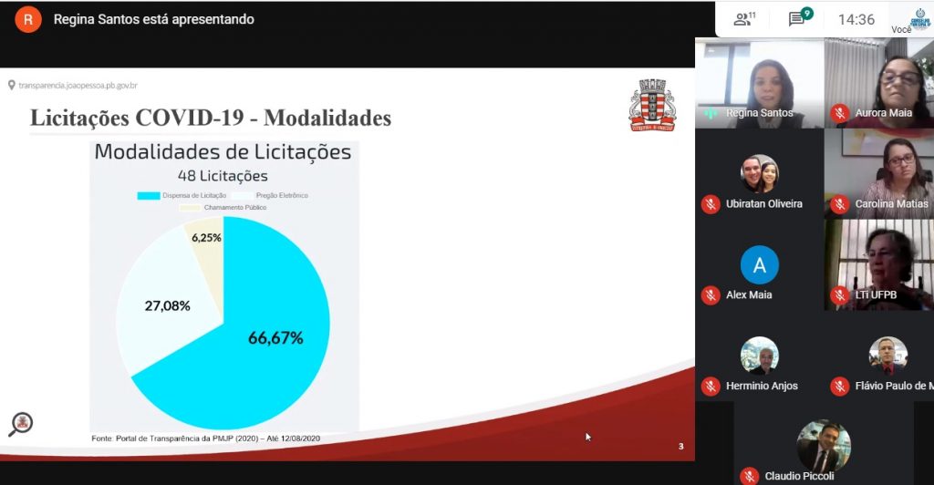 O Conselho Municipal de Transparência Pública e Combate à Corrupção (CMTCC) se reuniu na tarde desta quinta-feira (13) para avaliar gastos públicos. O objetivo principal da reunião, que aconteceu de forma remota, foi acompanhar o balanço das contratações emergenciais, além de avaliar novas estratégias de divulgação dos relatórios e informações relacionadas ao combate à Covid-19. O Conselho é formado por representantes da Prefeitura Municipal de João Pessoa (PMJP) e da sociedade civil.