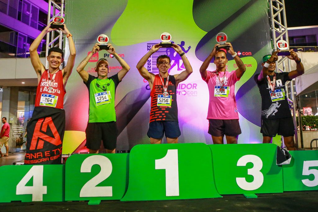 Os três melhores na categoria 5km geral masculino foram Daniel Isidoro Santos, seguido por Mateus Targino, em segundo, e Thiago Kênio em terceiro lugar.