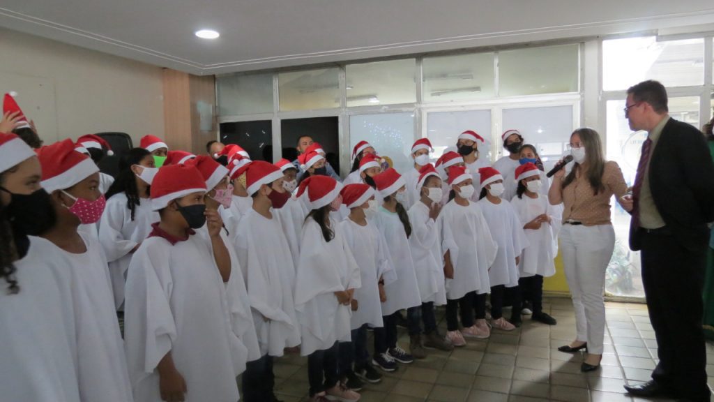 Crianças do ‘Coral de Vozes Infantis’ realizam apresentação no hall do Centro Administrativo Municipal