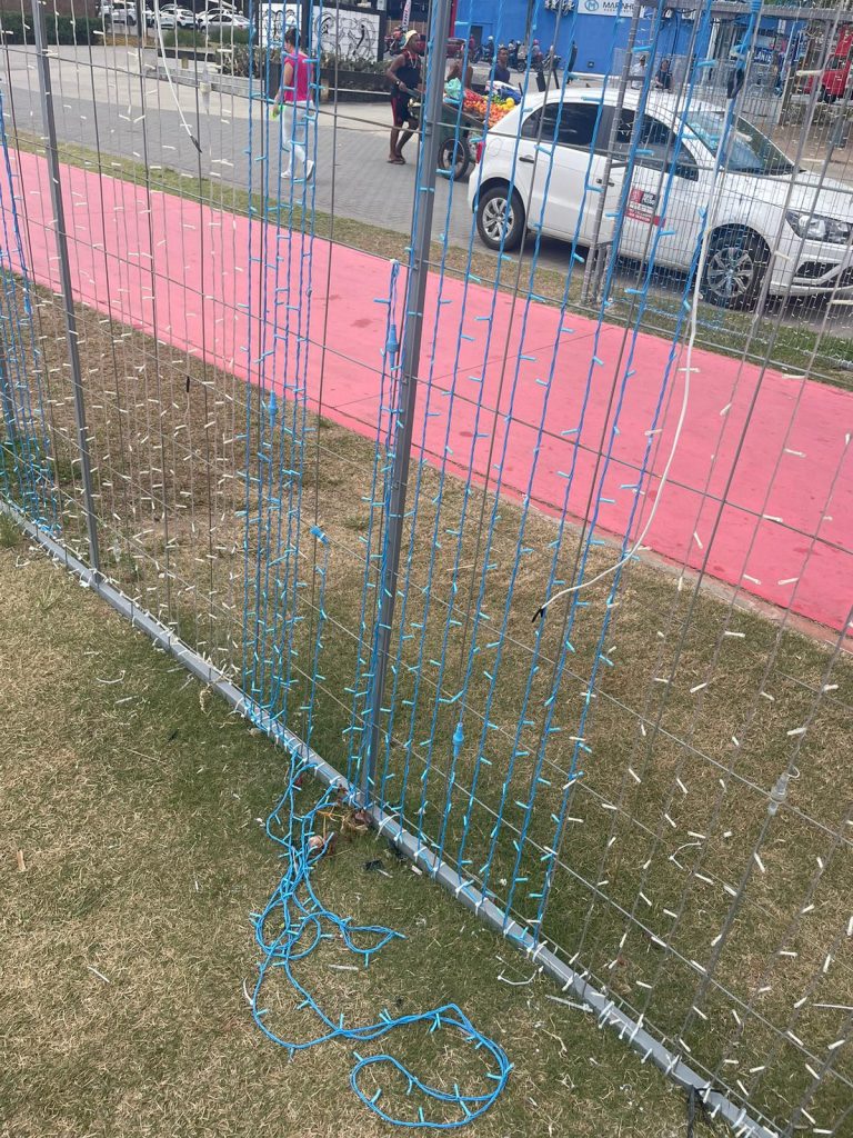 A depredação aconteceu na decoração do Parque Solon de Lucena, no túnel iluminado dançante, que tem 25 metros de extensão, e teve os fios cortados. A Seinfra foi acionada ainda na noite de segunda-feira e já está tomando as providências para resolver o problema. “Esse túnel tem uma programação, um sistema tecnológico para funcionar e cortaram os fios desse equipamento prejudica seu funcionamento”, explicou a diretora de Iluminação da Seinfra, Joyce Alves. “Estamos calculando o prejuízo e começaremos os reparos assim que possível”, informou.