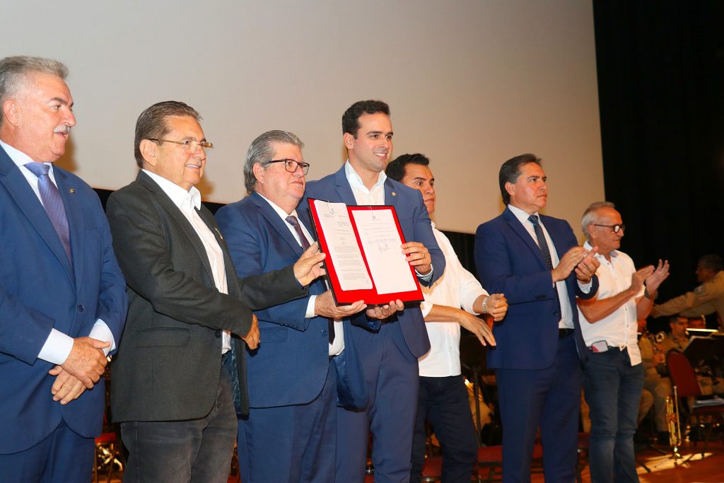 Nesse contexto, Cícero Lucena parabenizou o governador João Azevêdo pela sanção da nova Lei de Organização Básica da Polícia Militar da Paraíba (LOB), ocorrida no Teatro Pedra do Reino, onde destacou a importância da medida para o fortalecimento institucional da corporação e para a valorização dos profissionais que atuam na linha de frente da segurança pública.